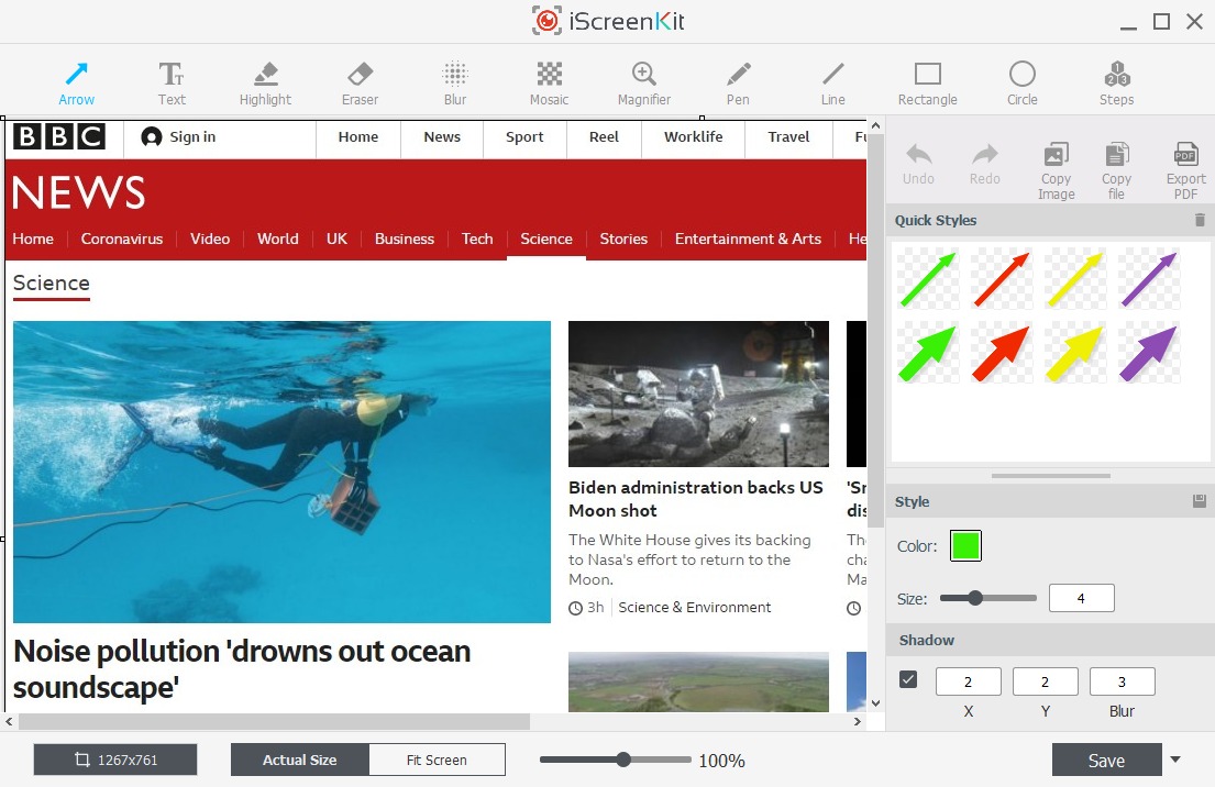 The iScreenKit program can help you make quick, easy, and informative screenshots. The application can run on Windows and Mac OS. You can customize the app to save a picture of your screen to a folder of your choice when you press a certain keyboard combination. Another keyboard combo can be used to begin a video recording of your activity on the PC.